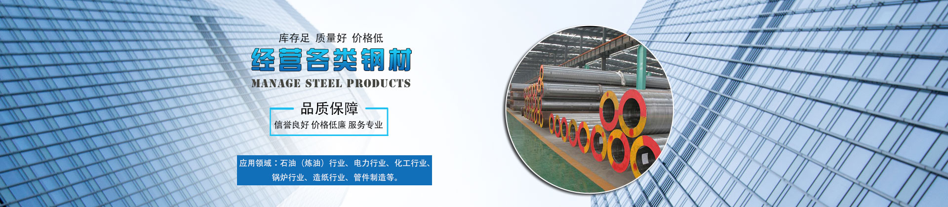 無(wú)錫市冶建金屬材料有限公司主要經(jīng)營(yíng)各種進(jìn)口、國(guó)產(chǎn)合金鋼、不銹鋼、碳鋼管材、板材、棒材、型材、管道配件和焊接材料,無(wú)縫管、直縫管、合金/高壓鍋爐專用管道等產(chǎn)品,并先后成為包頭、冶鋼、天津鋼廠的指定銷售代理商。被中石化、中石油總公司命名為"中國(guó)石化石油鋼管配送中心"